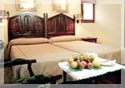 From the time of her marriage to Carlos III El Noble, Queen Leonor de Trastámara lived in this Old Palace of Olite until work was concluded on the New Palace. The twin-room is crossed by a deep original beam joining the palace wall where the window sits providing views over the Monastery of San Francisco and the Sierra de Ujué. It also has two four poster beds and a stunning original fireplace (the shaft is now sealed) in masonry stone and brick, all lending the room an authentic mediaeval atmosphere with the comforts expected in the 21st century.
