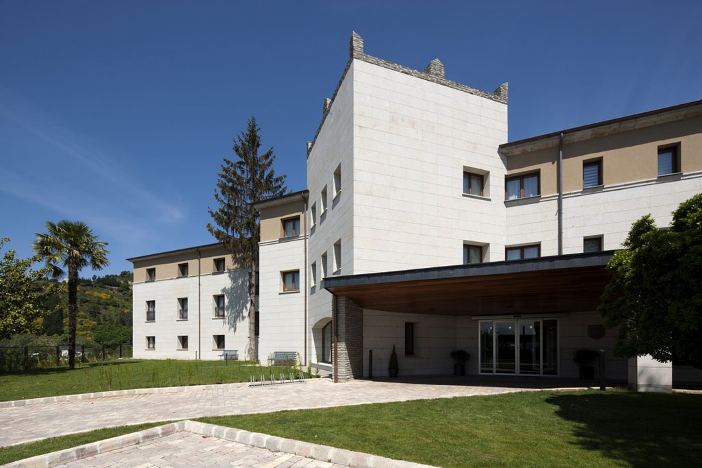 At the entrance to Villafranca del Bierzo, town of churches, monasteries, convents and fine buildings, stands this Parador, the leading tourist accommodation in the fascinating El Bierzo district. It is surrounded by mountains covered with cherry and fig trees, slopes dotted with chestnuts, poplars and small farms. The building is clad in stone and slate, in the vernacular style of the region. The interior exudes all theelegance, class and comfort of a contemporary building, especially the large restaurant, café and guest lounge. This last room is a particularly pleasant spot to meet and chat. Large windows in the guest rooms offer extraordinary views of the northwestern El Bierzo district and southern Ancares Mountains. In the garden you can enjoy the seasonal swimming pools, one of which has a sauna with ice fountain.